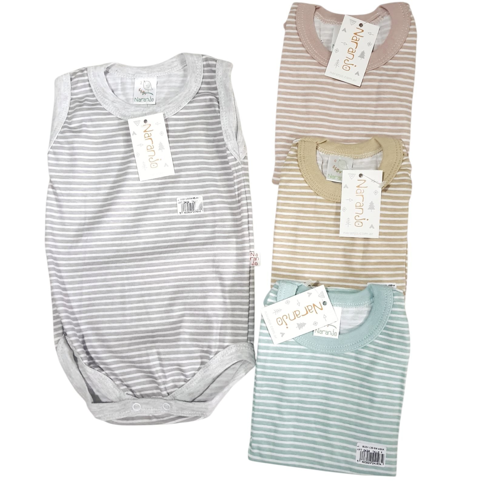 Body sin mangas, con Botón en el hombro para facilitar vestir al bebé. 100% Algodón, ideales para todo el año.